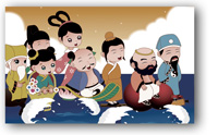 like the Eight Immortals crossing the sea, each one showing his or her special prowess